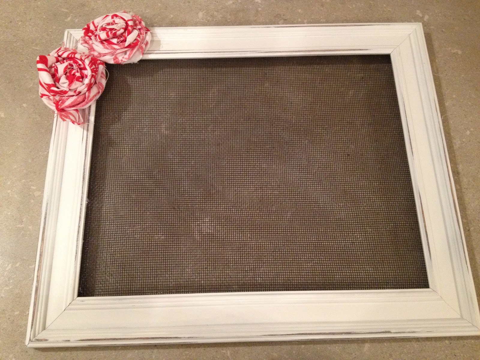 FRAME: Old frame or dollar store frame, take out the glass and the cardboard back. I spray painted my wooden frame white and distressed it a little.