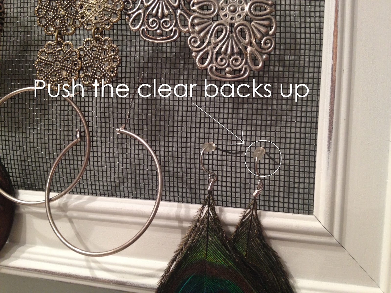 Now here's a tip for the earrings that have clear backs. I just pushed them farther up and then they weren't in the way.