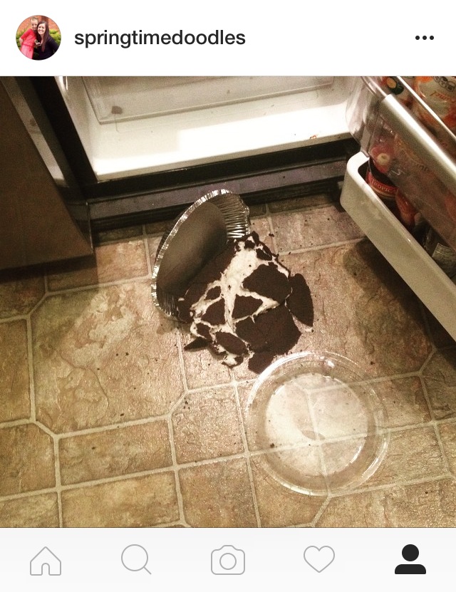 "My apologies to the church Christmas party. Looks like the Oreo pie I made wont be attending the party tonight. She's a hot mess."